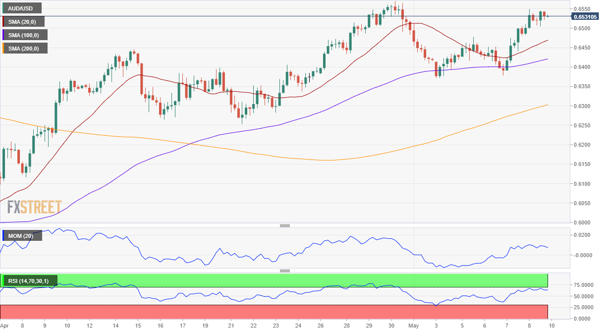 AUD/USD: Tento měnový pár je na denním grafu v býčím nastavení a je těsně pod klesajícím klouzavým průměrem SMA 100, který zatím brání růstu. Rostoucí SMA 20 poskytuje support. Technické indikátory jsou v pozitivní zóně a míří vzhůru. Na 4hodinovém grafu je nastavení také býčí. Technické indikátory jsou v pozitivní zóně. Jsme nad všemi klouzavými průměry, které míří vzhůru.