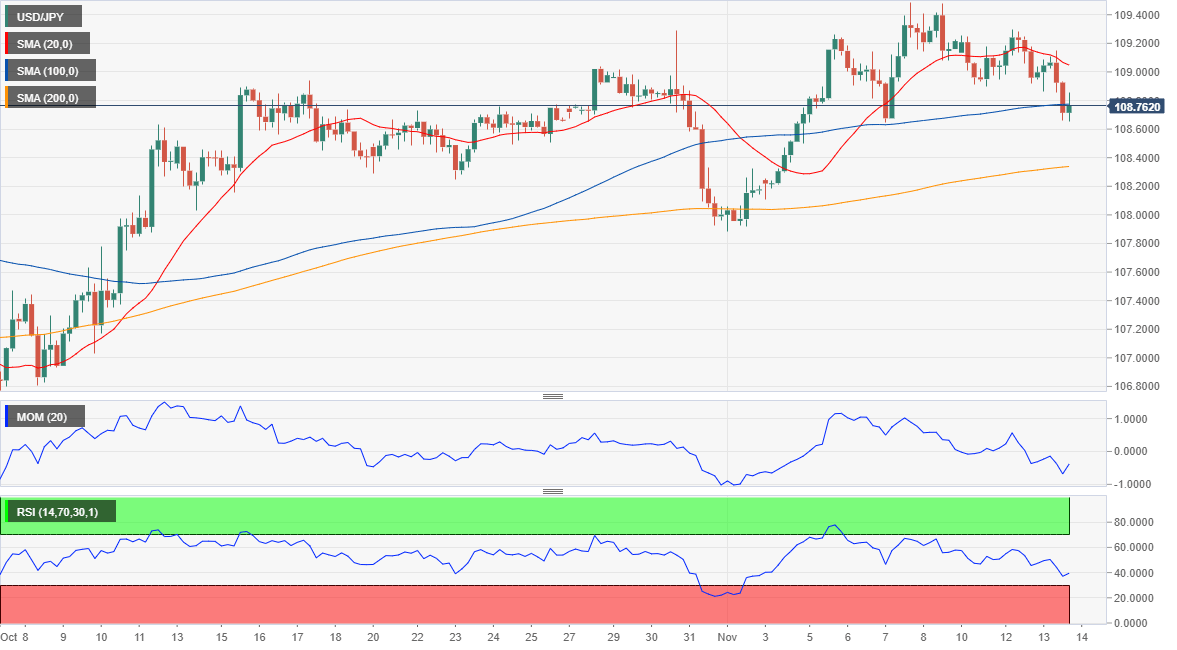 USD/JPY: Tento měnový pár je na 4hodinovém grafu v krátkodobém medvědím nastavení, protože je pod klouzavým průměrem SMA 20, který míří dolů. Je také pod do strany mířícím klouzavým průměrem SMA 100. Technické indikátory jsou v negativní oblasti.