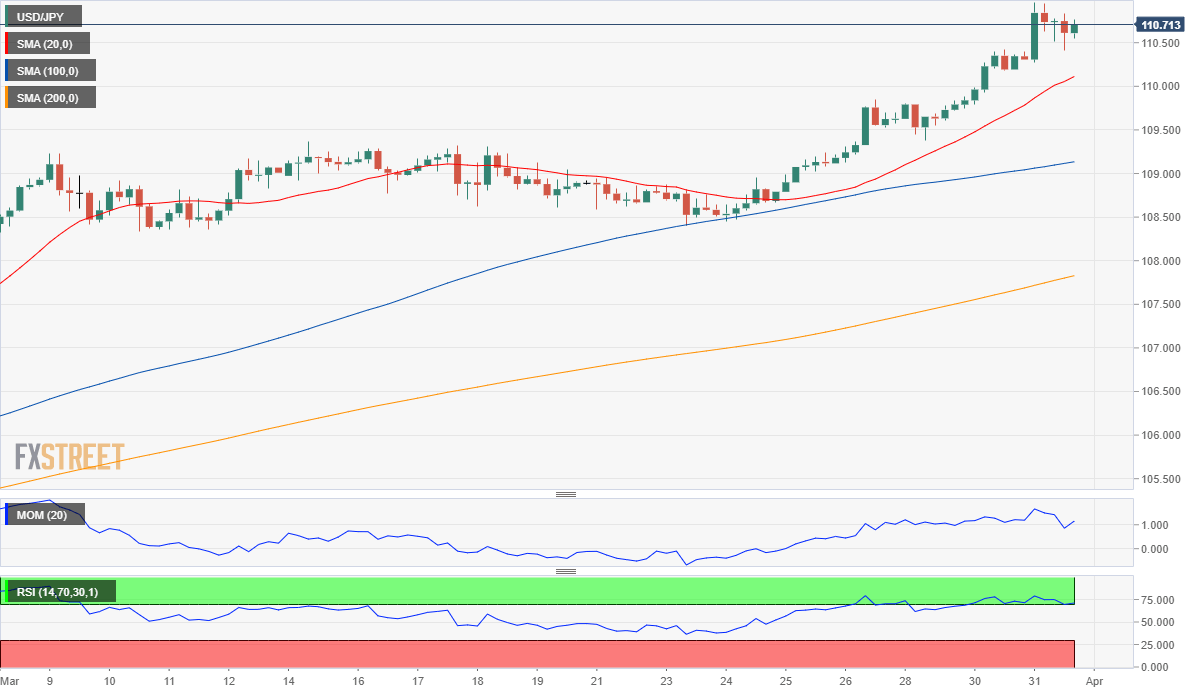 USD/JPY: Tento měnový pár je na 4hodinovém grafu v býčím nastavení a nenaznačuje vyčerpání kupců. Jsme nad všemi klouzavými průměry, které míří vzhůru. SMA 20 je kolem 110,10 a včerejší minimum je na 110,40. Technické indikátory jsou v pozitivní zóně.
