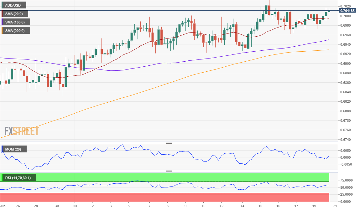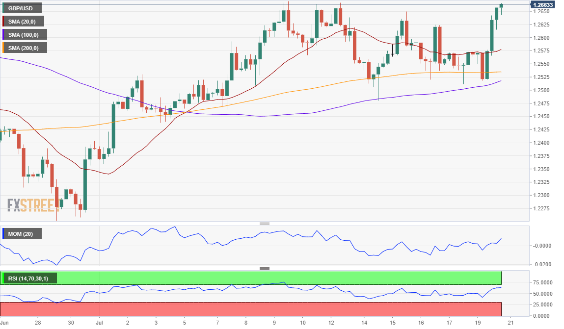 EUR/USD: Tento měnový pár je na 4hodinovém grafu nedaleko nedávných maxim u 1,2245. Kupci mají převahu, ale cena postrádá býčí momentum. Jsme nad rostoucím klouzavým průměrem SMA 20. Technické indikátory jsou v pozitivní zóně, ale nemají jasný směr. -