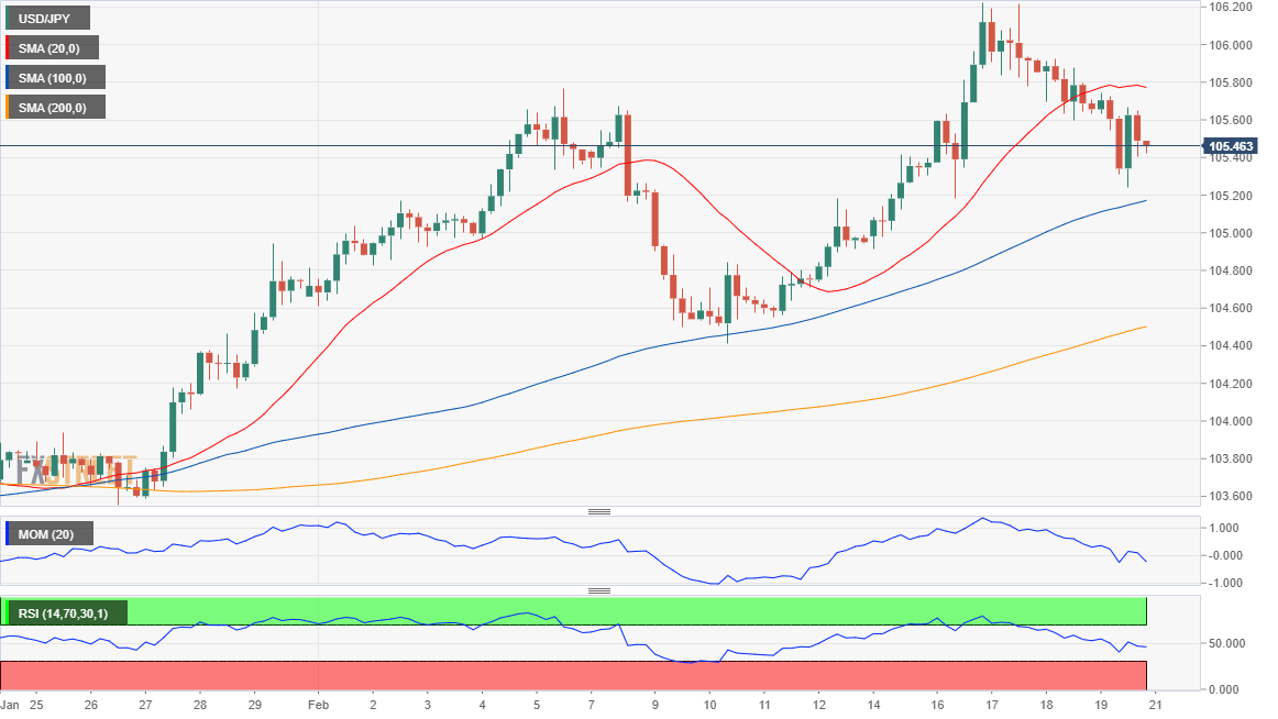 USD/JPY: Tento měnový pár by na denním grafu mohl dále klesat. Jsme pod klesajícím klouzavým průměrem SMA 200, ale nad rostoucím SMA 20, který je dynamickým supportem na 104,90. Technické indikátory jsou v pozitivní zóně. Na 4hodinovém grafu je nastavení medvědí. Technické indikátory jsou v negativní zóně.
