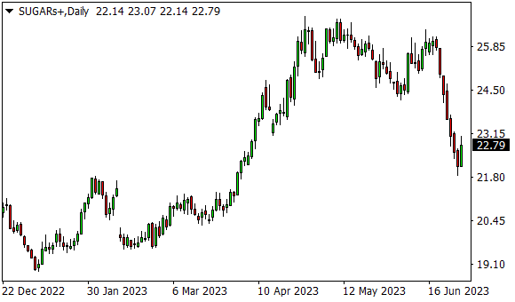 Vývoj ceny cukru (denní graf – D1):
