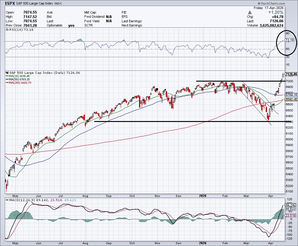 Hlavní americké akciové indexy s výjimkou Dow jsou na nových historických maximech. S&P 500 na něj vystoupal ve středu, kdy poprvé uzavřel nad 7 000, a do pátku rekord ještě dvakrát posunul. Zatímco od poloviny prosince do začátku března trh stagnoval ve zhruba 200bodovém pásmu a hladina 7 000 opakovaně zafungovala jako rezistence, po válečném pullbacku býci zabrali a psychologickou hranici prorazili.