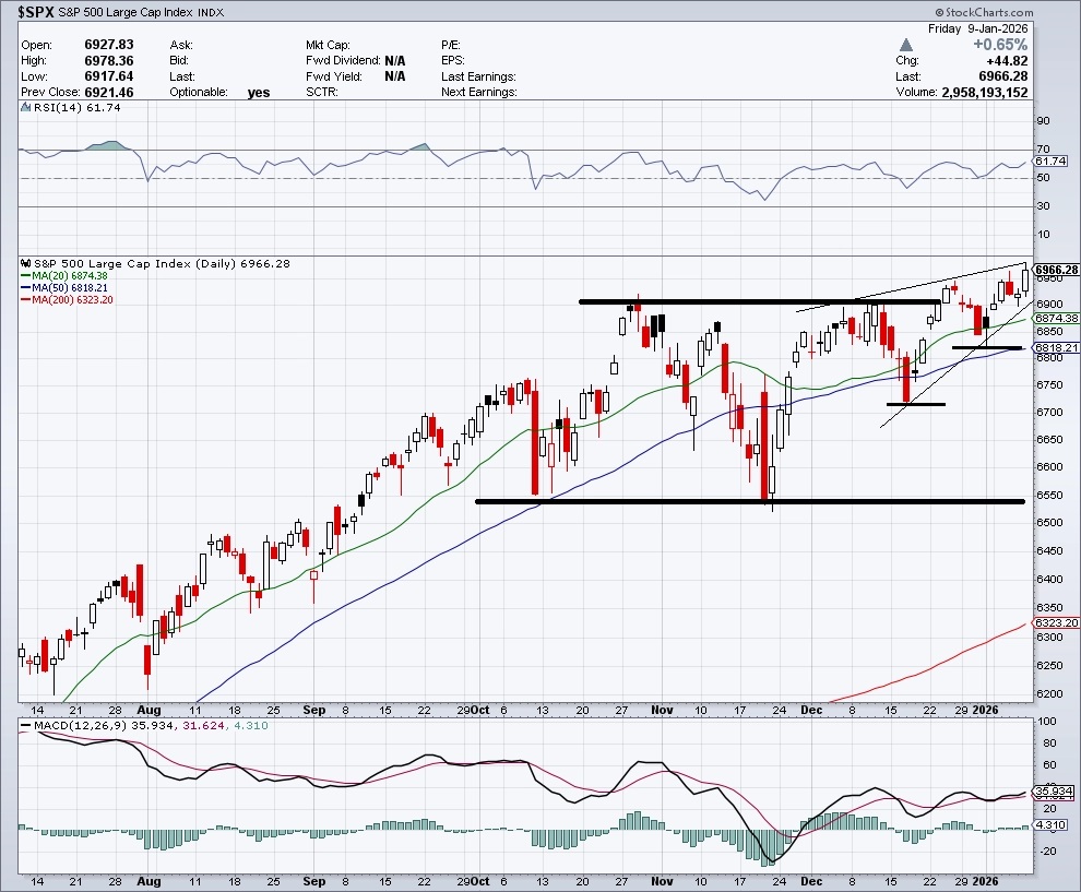 Většina technických indikátorů zůstává pozitivní, index S&P 500 by tak po páteční rally mohl brzy otestovat hladinu 7 000. Nejbližší podpora je na 6 824 (minima z předchozího týdne), další na 6 720 (prosincové dno). Zásadní support je až na 6 500 bodů, v současnosti je už ale hodně vzdálená a z krátkodobého hlediska není relevantní.
