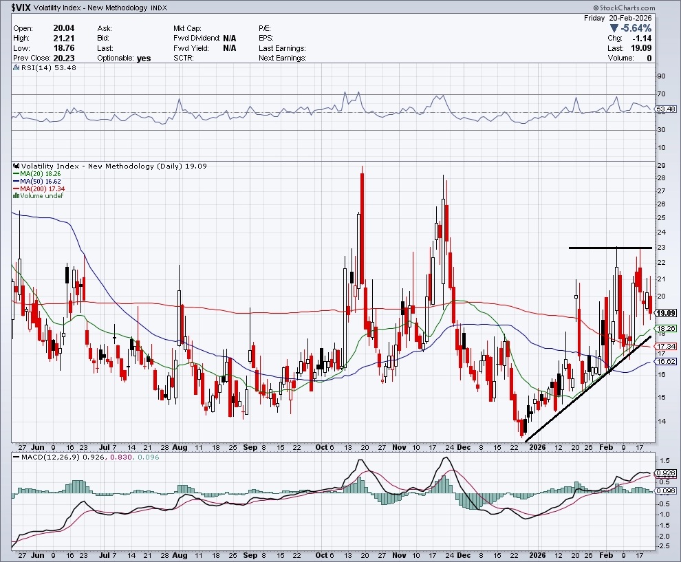Index volatility VIX (takzvaný index strachu, který měří rozkolísanost trhu) se v týdnu vyvíjel učebnicově, tedy inverzně k indexu S&P 500. Celkově klesl o 7,33 %, je ale stále nad klouzavými průměry a nenarušil trend růstu volatility, který začal koncem loňského roku.