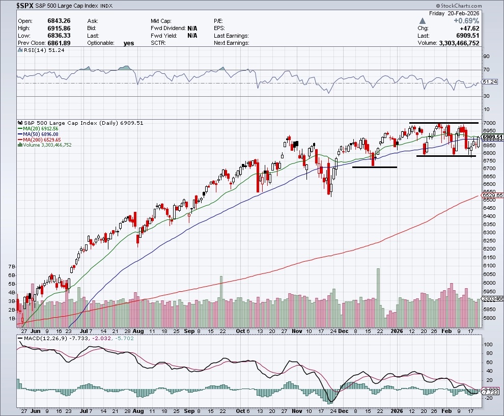 Americký akciový index S&P 500 se nadále drží v poměrně úzkém konsolidačním pásmu. Na spodní straně je vymezeno podporami v rozpětí 6 720 až 6 800 bodů, horní hranici vymezuje rezistence na 7 000 bodech. Čím později dojde k proražení z tohoto pásma, tím silnější signál o dalším vývoji to může být. Páteční růst vrátil index zhruba do středu uvedeného pásma konsolidace.