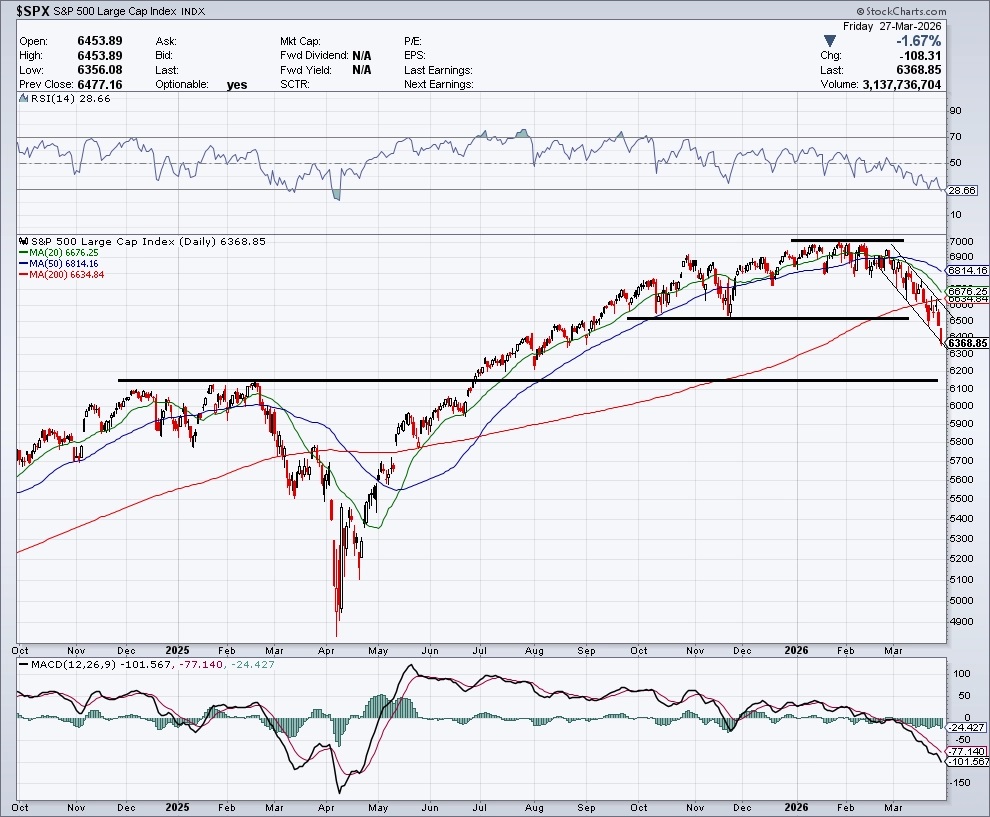 Index S&P 500 měl v první polovině uplynulého týdne tendenci napravovat ztráty, podobně jako v týdnu předchozím. Závěr týdne ale potvrdil aktuálně medvědí nastavení trhu, informace o dalším odložení útoků na íránskou energetickou infrastrukturu už nevyvolaly nákupní tlak a trh potvrdil sestupný trend poklesem na nové minimum.