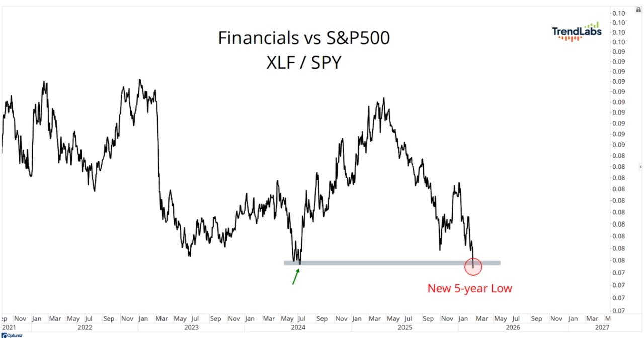 Index S&P 500 mírným týdenním poklesem uzavřel ztrátový únor (-0,87 %), během kterého se pohyboval v úzkém pásmu. Na jeho spodní straně fungovala podpora okolo 6 800 bodů a na té horní naopak sílil prodejní tlak, jakmile se index přiblížil 7 000 bodům. Potvrzené prolomení nad tuto hladinu by bylo po měsících konsolidace výrazně pozitivním signálem, na opačné straně by naopak silně nepříznivě vyzněl sesun pod prosincová minima na 6 720 bodech.