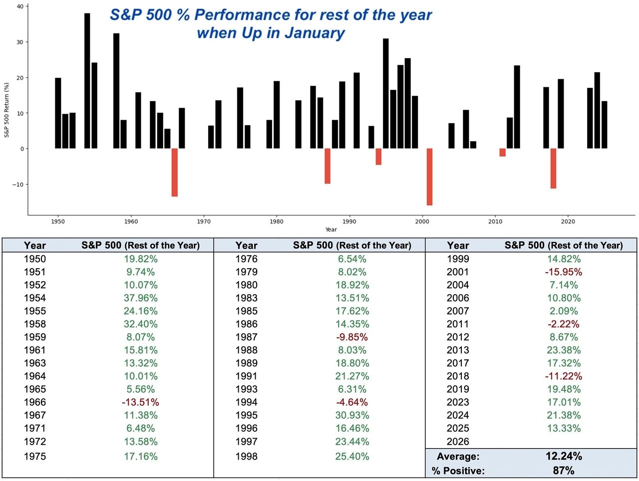 Za celý leden index S&P 500 přidal 1,37 %. Pokud by měl letos zafungovat takzvaný lednový efekt, americký akciový trh by do konce roku měl dále vzrůst. Od roku 1950 po lednovém růstu do konce roku zpevnil v 87 % případů, v průměru o více než 12 %. V éře Trumpa 2.0 se ale dá na sezónní vzorce spoléhat snad ještě hůře než v "normálnějších" časech.