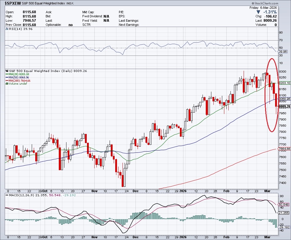 Nadprůměrnou výkonnost větších firem z indexu pak jasně ilustruje sesun indexu S&P 500 Equal Weight z historického maxima z předchozího pátku o 3,39 %, tedy hlubší než u indexu S&P 500. Naproti tomu výrazně technologicky zaměřený Nasdaq Composite odepsal pouze 1,24 %.