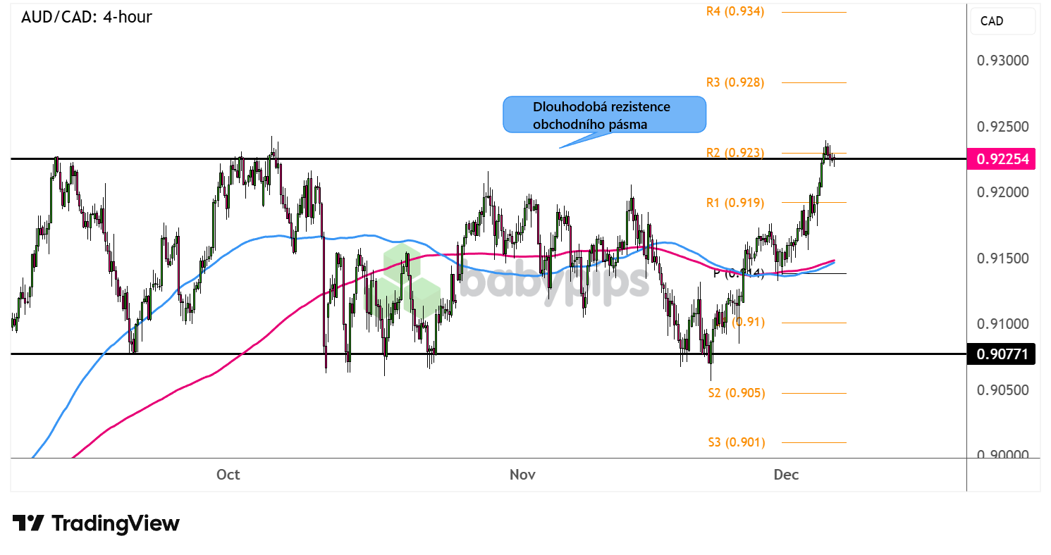 AUD/CAD proráží rezistenci trendového kanálu