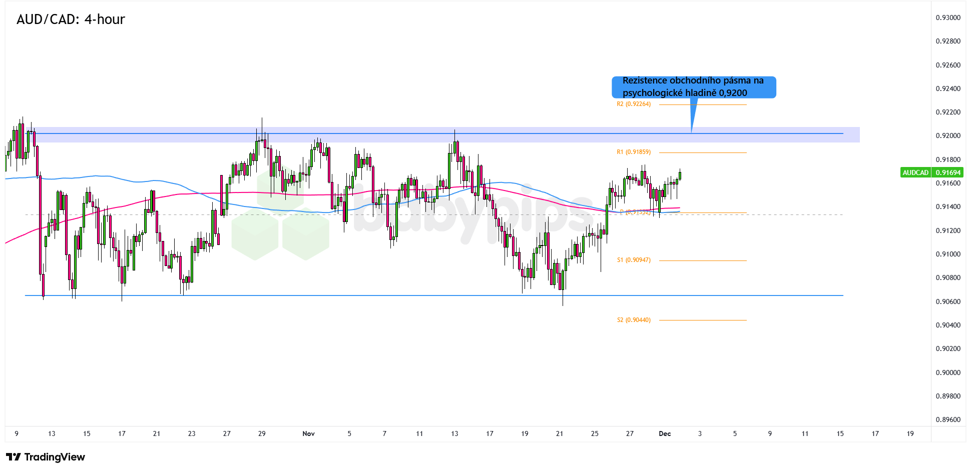 Vývoj měnového páru AUD/CAD (4hodinový graf – H4):