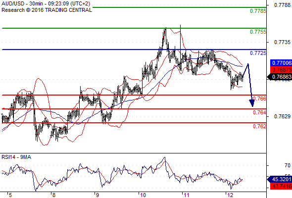 Preferovaný scénář: Krátké (short) pozice pod 0,7725 s cílem na 0,7660 a dále pak až na 0,7640.