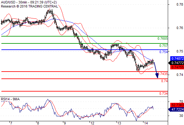 Preferovaný scénář: Krátké (short) pozice pod 0,7540 s cílem na 0,7435 a dále pak až na 0,7400.