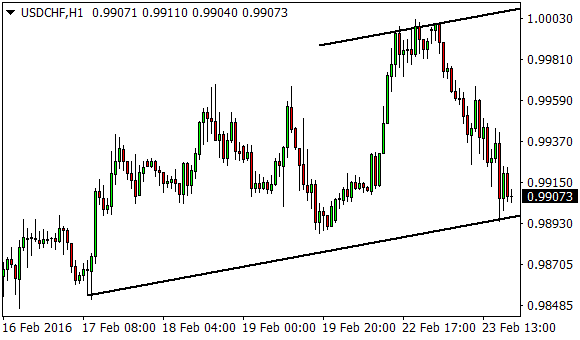 Vývoj měnového páru USD/CHF (1hodinový graf – H1):