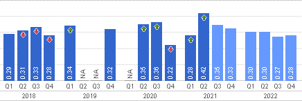 Keď sa pozrieme na akciu valuačne tak nám príde lacná z potenciálom rastu. Za posledný štvrťrok rástli tržby 13.8 % tempom čo nieje na zahodenie... P/E Je na úrovni 7.56.