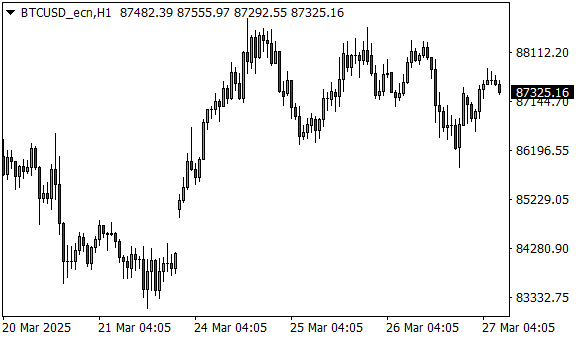 Vývoj ceny bitcoinu (1hodinový graf - H1):