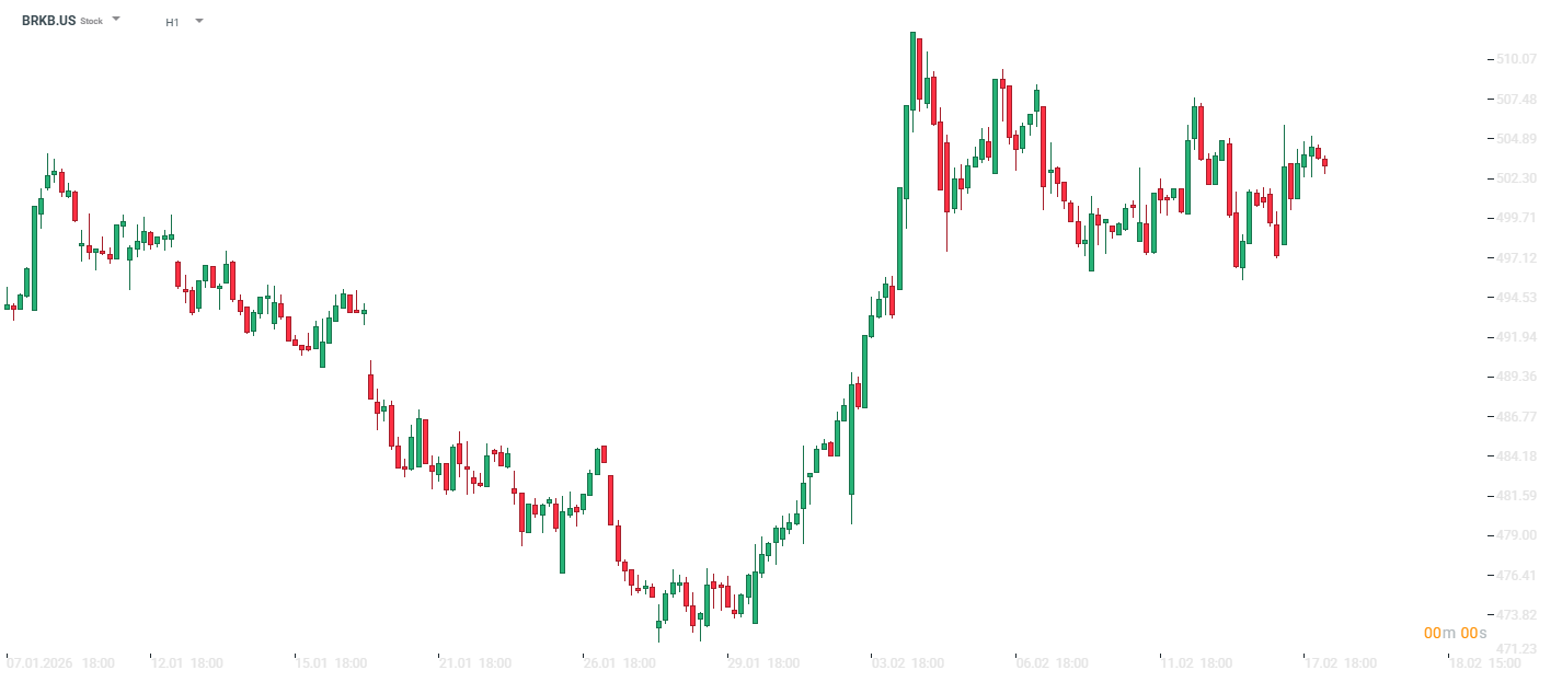 Vývoj ceny akcií Berkshire Hathaway (1hodinový graf - H1):