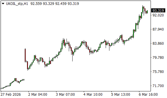 Vývoj ceny ropy Brent (1hodinový graf - H1):