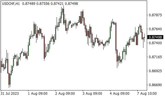 Vývoj měnového páru USD/CHF (1hodinový graf - H1):