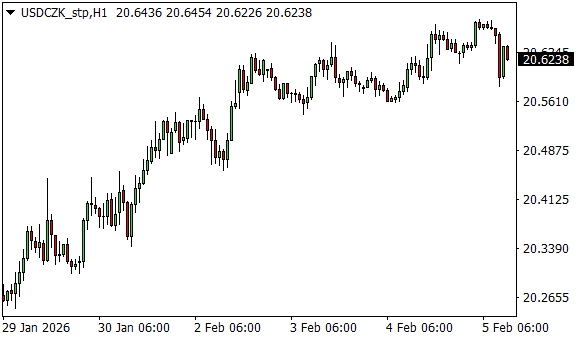 Vývoj měnového páru USD/CZK (1hodinový graf - H1):