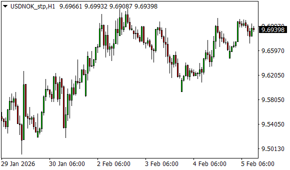 Vývoj měnového páru USD/NOK (1hodinový graf - H1):