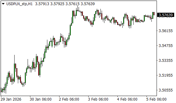 Vývoj měnového páru USD/PLN (1hodinový graf - H1):