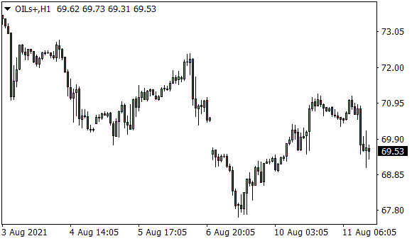 Vývoj ceny ropy WTI (1hodinový graf - H1):