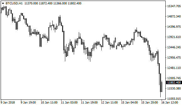 Vývoj ceny bitcoinu (1hodinový graf – H1):