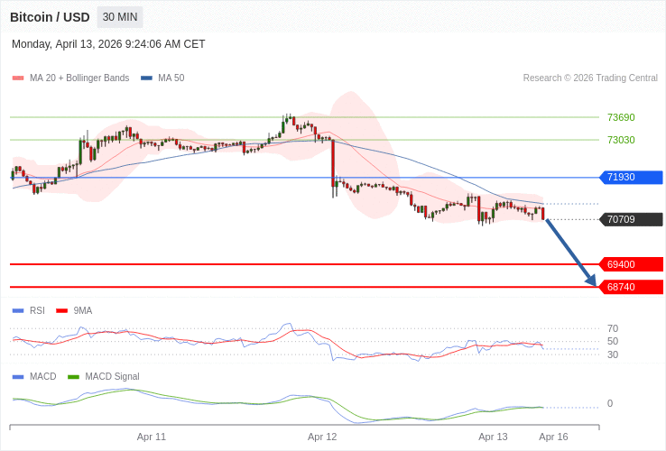 Bitcoin - Intradenní výhled 13.4.2026