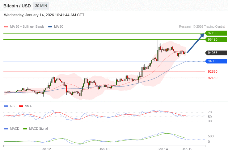 Bitcoin - Intradenní výhled 14.1.2026