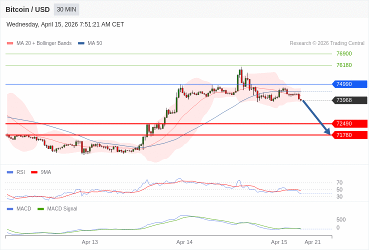 Klíčová slova: Bitcoin | Intradenní výhled | Indikátor | Pozice | RSI | Rezistence | Short | Trading | Pivot | Trading Central | Supporty a rezistence | Výhled | Krátké (short) pozice | Indikátor RSI | Růst | Supporty |