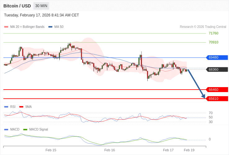 Klíčová slova: Bitcoin | Intradenní výhled | Indikátor | Pozice | RSI | Rezistence | Short | Trading | Pivot | Trading Central | Supporty a rezistence | Výhled | Krátké (short) pozice | Indikátor RSI | Růst | Supporty |