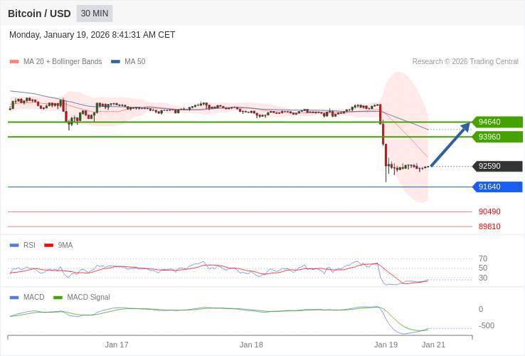 Klíčová slova: Bitcoin | Intradenní výhled | Indikátor | Long | Pozice | RSI | Rezistence | Trading | Pivot | Trading Central | Supporty a rezistence | Výhled | Pokles | Indikátor RSI | Dlouhé (long) pozice | Supporty |