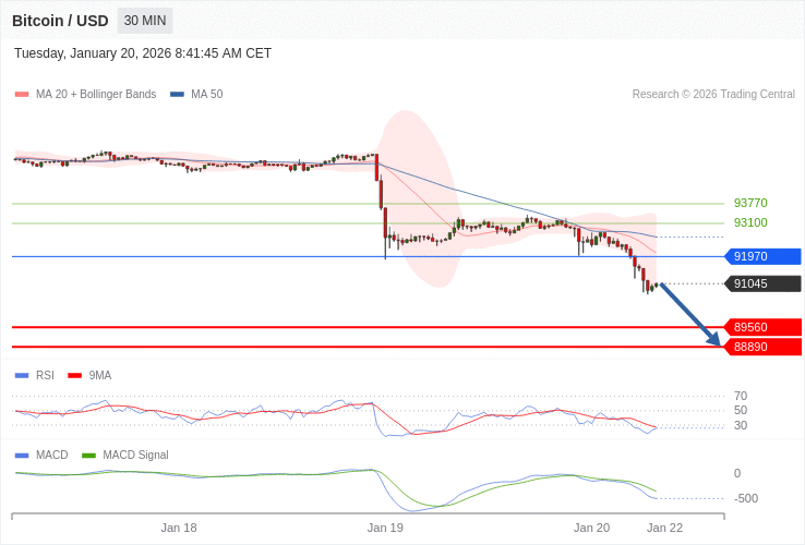 Klíčová slova: Bitcoin | Intradenní výhled | Indikátor | Pozice | RSI | Rezistence | Short | Trading | Pivot | Trading Central | Supporty a rezistence | Výhled | Krátké (short) pozice | Indikátor RSI | Růst | Supporty |