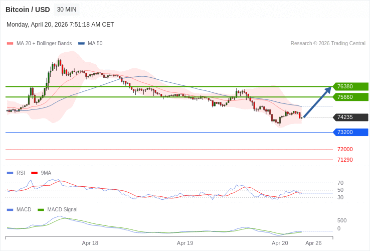 Klíčová slova: Bitcoin | Intradenní výhled | Indikátor | Long | Pozice | RSI | Rezistence | Trading | Pivot | Trading Central | Supporty a rezistence | Výhled | Pokles | Indikátor RSI | Dlouhé (long) pozice | Supporty |