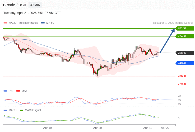 Bitcoin - Intradenní výhled 21.4.2026