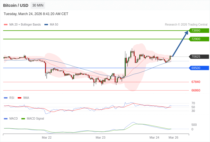 Bitcoin - Intradenní výhled 24.3.2026
