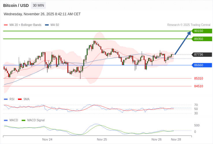 Klíčová slova: Bitcoin | Intradenní výhled | Indikátor | Long | Pozice | RSI | Rezistence | Trading | Pivot | Trading Central | Supporty a rezistence | Výhled | Pokles | Indikátor RSI | Dlouhé (long) pozice | Supporty |