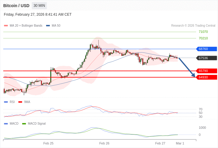 Klíčová slova: Bitcoin | Intradenní výhled | Indikátor | Pozice | RSI | Rezistence | Short | Trading | Pivot | Trading Central | Supporty a rezistence | Výhled | Krátké (short) pozice | Indikátor RSI | Růst | Supporty |