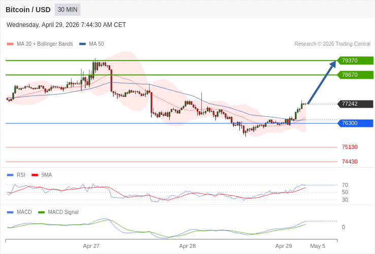 Bitcoin - Intradenní výhled 29.4.2026