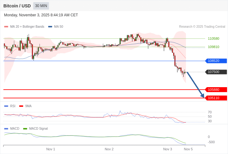 Klíčová slova: Bitcoin | Intradenní výhled | Indikátor | Pozice | RSI | Rezistence | Short | Trading | Pivot | Trading Central | Supporty a rezistence | Výhled | Krátké (short) pozice | Indikátor RSI | Růst | 3М | Supporty |