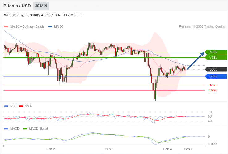 Bitcoin - Intradenní výhled 4.2.2026