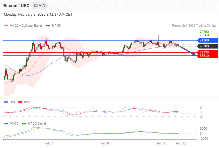 Klíčová slova: Bitcoin | Intradenní výhled | Indikátor | Pozice | RSI | Rezistence | Short | Trading | Pivot | Trading Central | Supporty a rezistence | Výhled | Krátké (short) pozice | Indikátor RSI | Růst | Supporty |