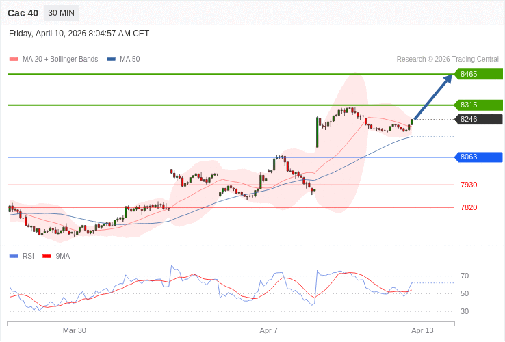 Klíčová slova: Intradenní výhled | Indikátor | Long | Pozice | RSI | Rezistence | Trading | CAC 40 | Pivot | Trading Central | Supporty a rezistence | Výhled | Pokles | Indikátor RSI | Dlouhé (long) pozice | Supporty |
