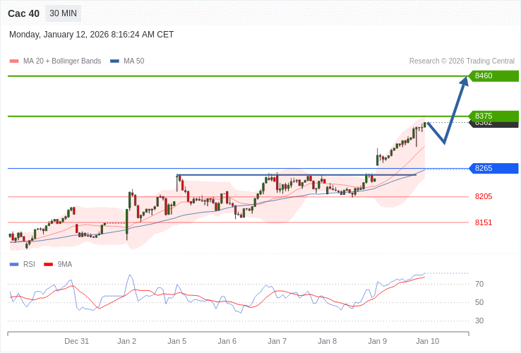 Klíčová slova: Intradenní výhled | Long | Pozice | Rezistence | Riziko | Trading | CAC 40 | Obchodníci | Pivot | Trading Central | Vybírání zisků | Supporty a rezistence | Výhled | Pokles | Dlouhé (long) pozice | Supporty |