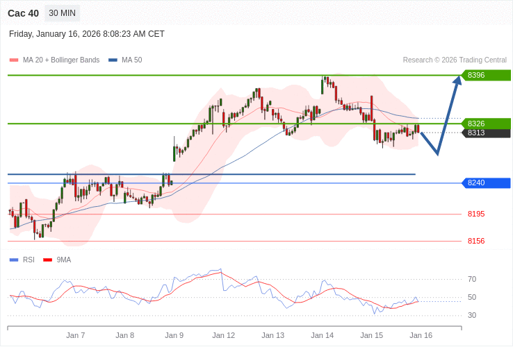 Klíčová slova: Intradenní výhled | Indikátor | Long | Pozice | RSI | Rezistence | Trading | CAC 40 | Pivot | Trading Central | Supporty a rezistence | Výhled | Pokles | Indikátor RSI | Dlouhé (long) pozice | Supporty |