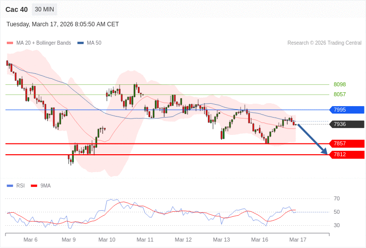 Klíčová slova: Intradenní výhled | Indikátor | Pozice | RSI | Rezistence | Short | Trading | CAC 40 | Pivot | Trading Central | Supporty a rezistence | Výhled | Krátké (short) pozice | Indikátor RSI | Růst | 3М | Supporty |