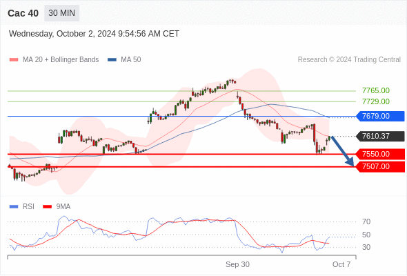 Klíčová slova: Intradenní výhled | Pozice | Rezistence | Short | Trading | Obchodovat | CAC 40 | Index | Pivot | Trading Central | Supporty a rezistence | Index CAC 40 | Výhled | Krátké (short) pozice | Medvědi | Růst | Supporty |