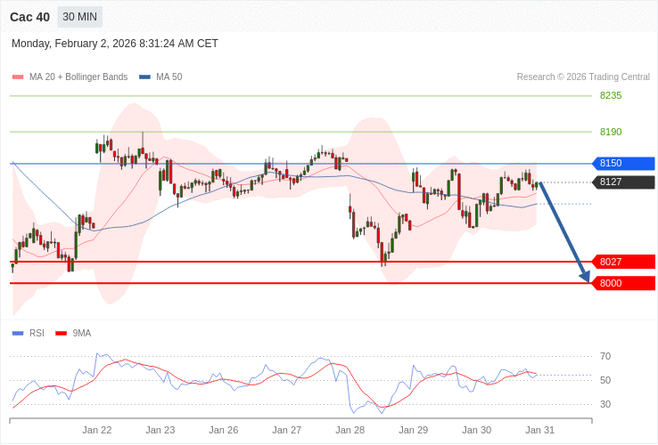 CAC 40 - Intradenní výhled 2.2.2026